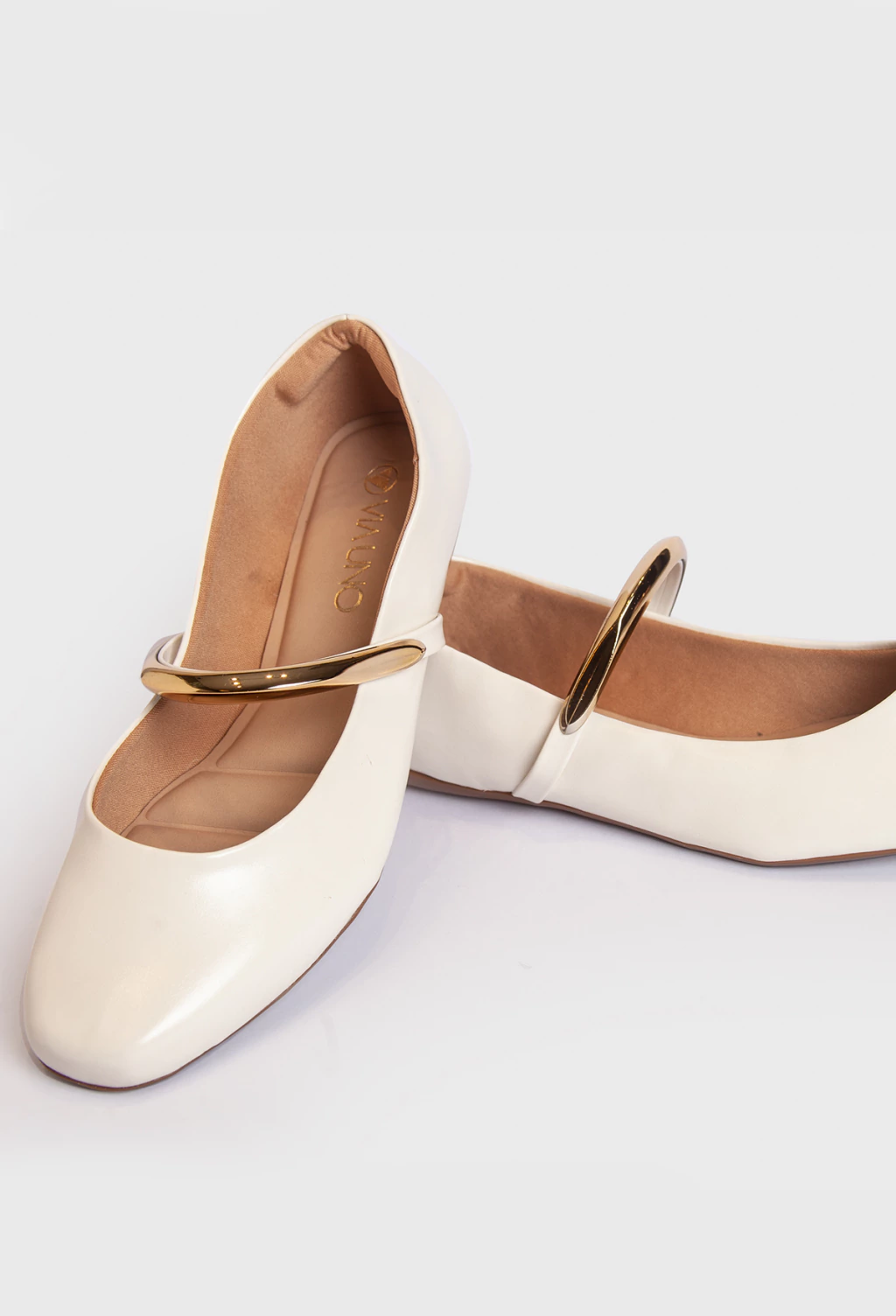 Ballerinas 308109 Off white: elegancia y comodidad en cada paso. Confeccionadas en ecocuero napa off white, estas ballerinas presentan un delicado adorno dorado en la capellada que realza su diseño sofisticado. Su base de goma asegura un agarre óptimo, mientras que la plantilla SUPERCONFORT brinda una sensación de bienestar inigualable durante todo el día. Perfectas para complementar tus looks urbanos con estilo y suavidad.