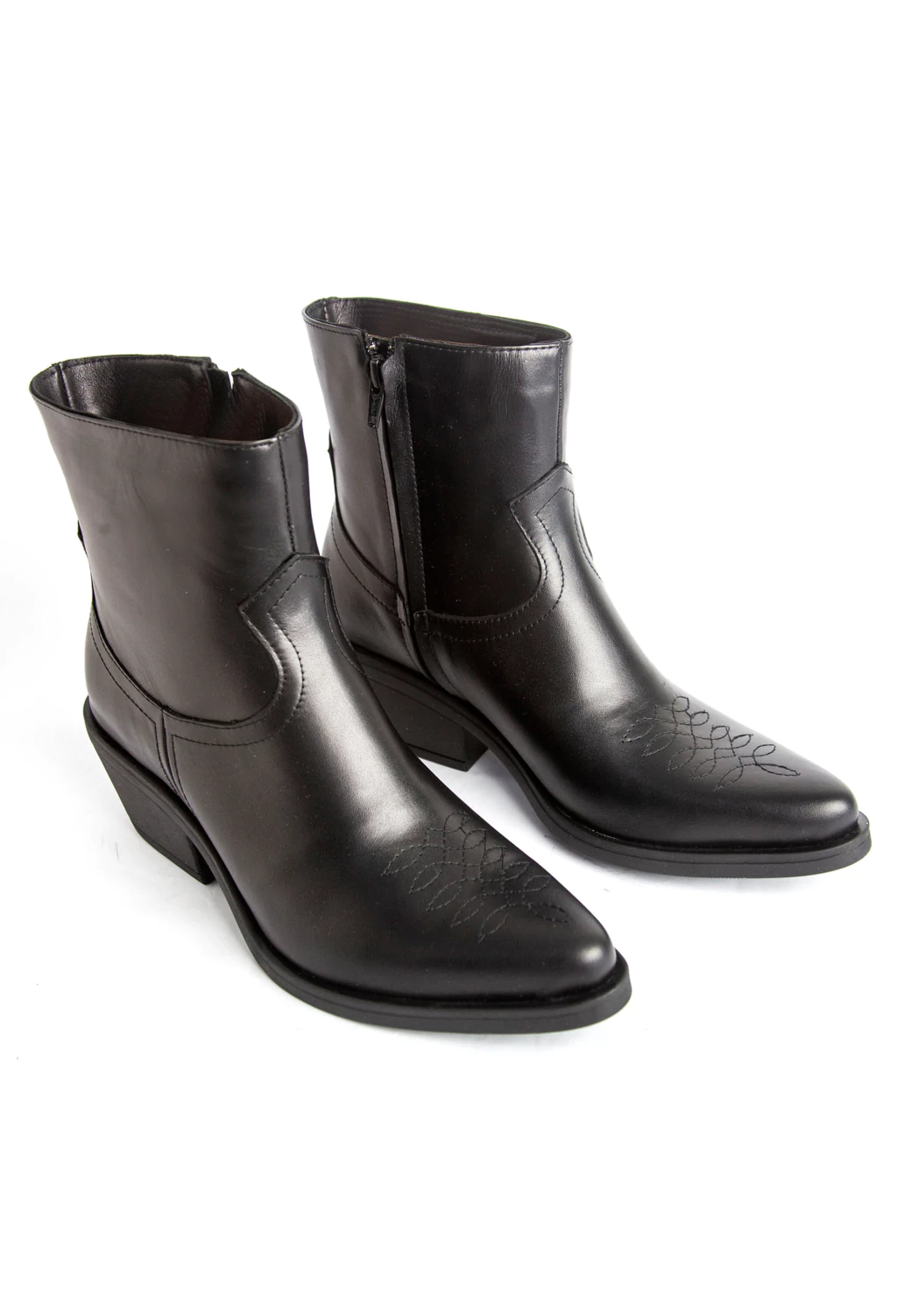 Descubre la elegancia y comodidad de nuestras botinetas texanas, confeccionadas en cuero napa color negro.