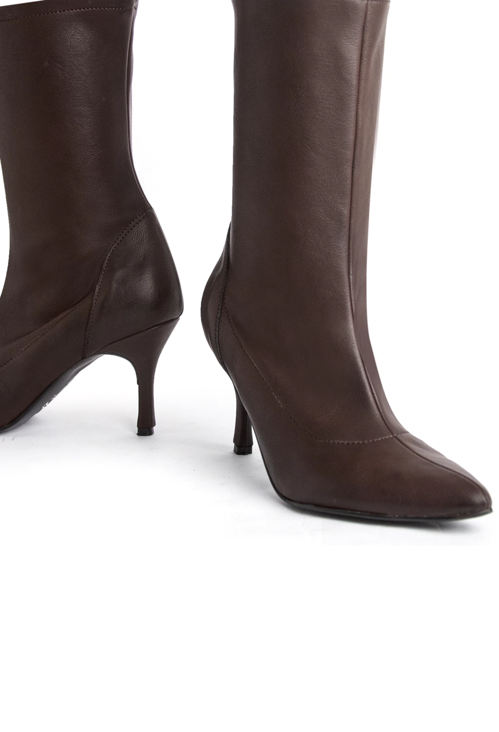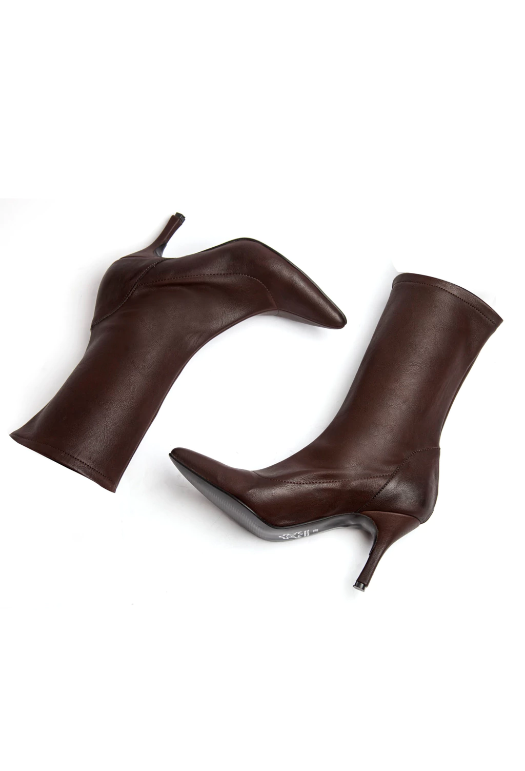 Estas botinetas con taco fino de 9 cm están confeccionadas en econapa elastizada chocolate, ofreciendo un ajuste cómodo y sofisticado. Su diseño estilizado las convierte en el complemento ideal para pantalones anchos, sastreros y jeans, elevando cualquier look con un toque de distinción. Además, su suela de cueroflex garantiza comodidad y flexibilidad en cada paso.