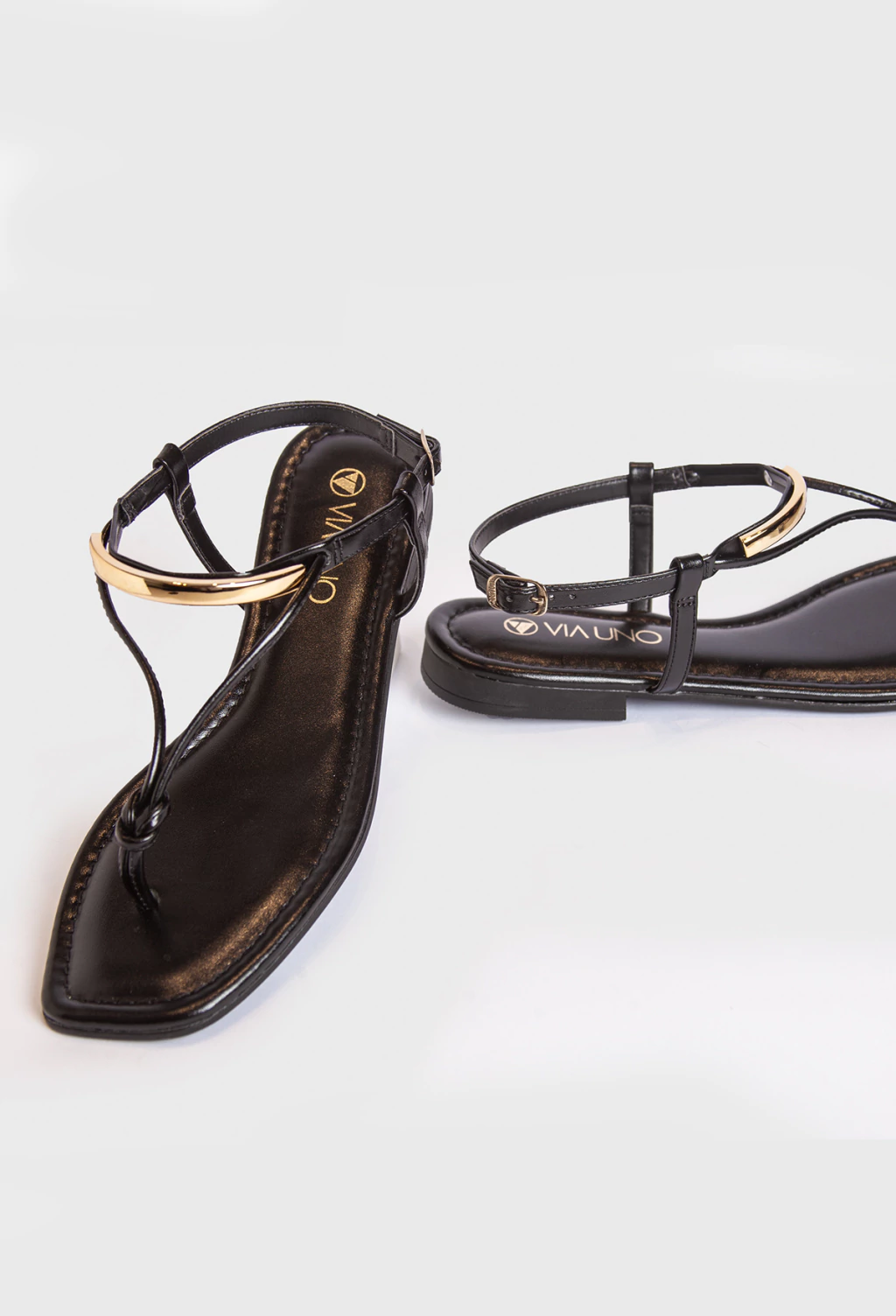 Ojotas 860095 Negro, diseñadas para quienes buscan comodidad sin sacrificar estilo. Confeccionadas en ecocuero napa, destacan por su delicado adorno dorado en la capellada que aporta un toque de elegancia sutil. La pulsera ajustable asegura un calce perfecto, mientras que la plantilla SUPERCONFORT y la base de goma garantizan uso prolongado con máxima comodidad. Ideales para lucir sofisticada en cualquier ocasión.