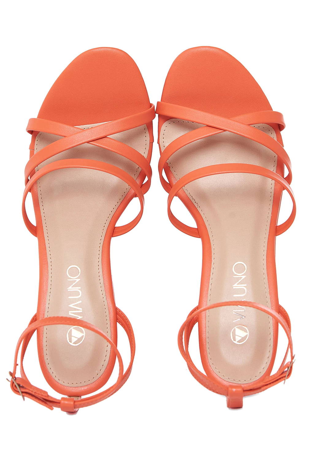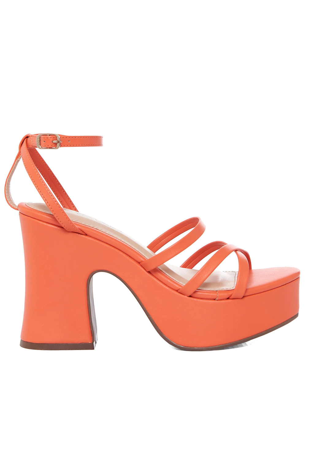 Sandalias con plataforma, confeccionados en ecocuero napa. Capellada compuesta por dos tiritas cruzadas, una recta y pulsera ajustable en el talón. La plataforma está forrada con el mismo material de la capellada. La base es de goma.