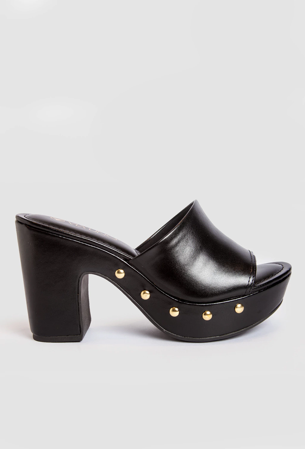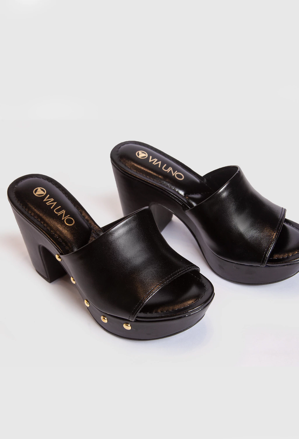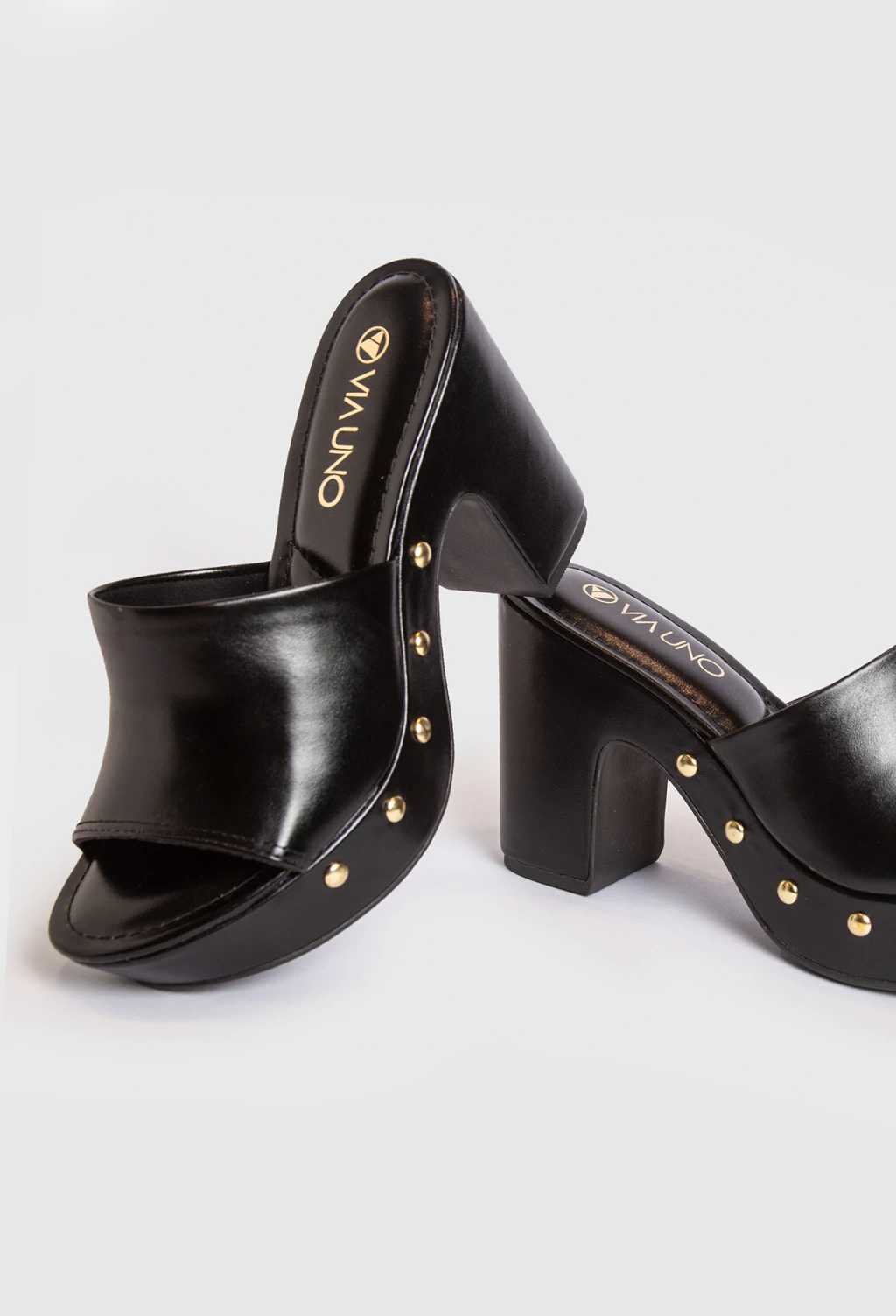 Descubrí los Zuecos 381047 Negro, la combinación perfecta de estilo y comodidad para cada paso. Confeccionados en eco cuero napa negro, presentan una tira ancha que abraza el pie con elegancia. Su plataforma y taco grueso ofrecen altura y estabilidad, mientras las tachas doradas aportan un toque boho chic inconfundible. Además, su plantilla SUPERCONFORT garantiza confort todo el día. ¡Un imprescindible para tu guardarropa!
