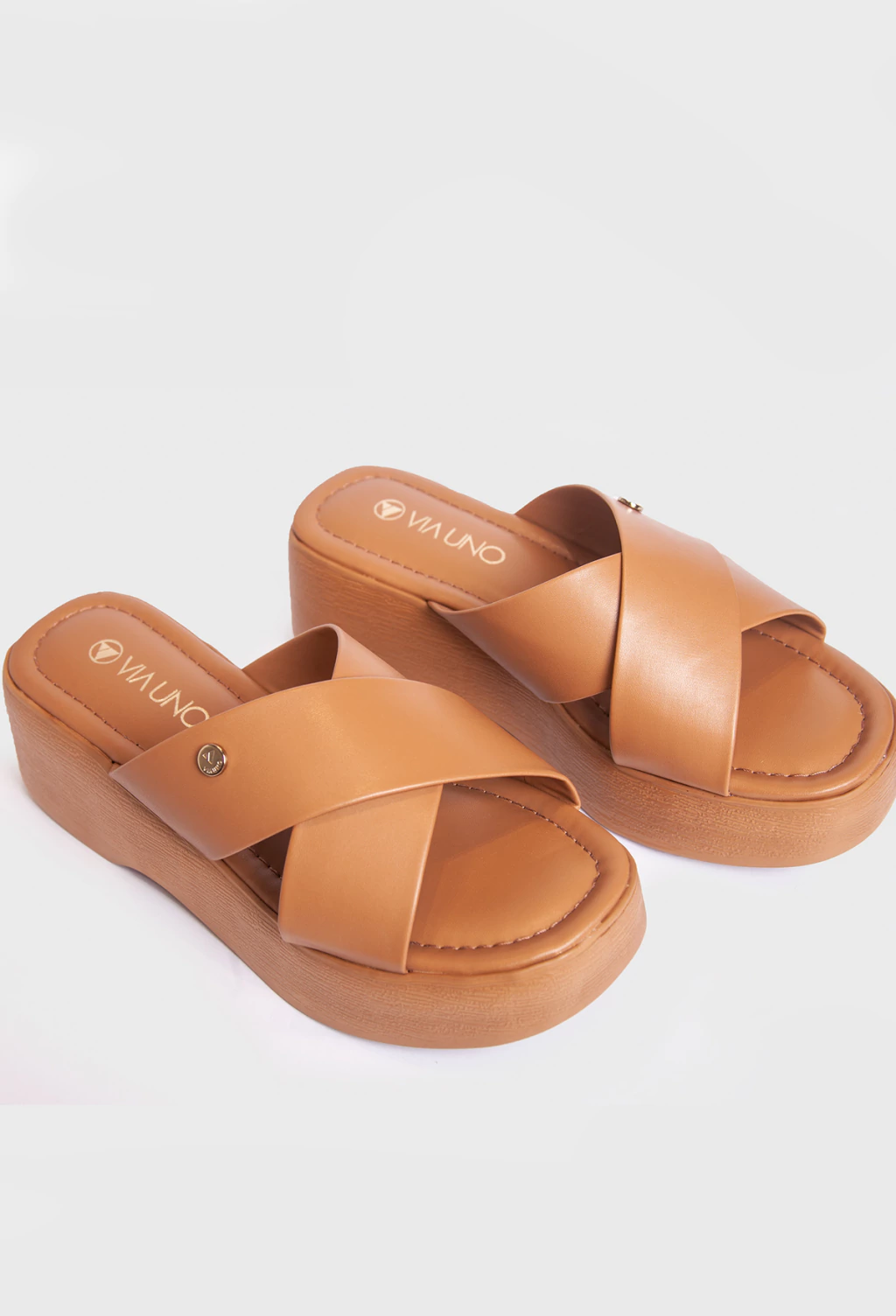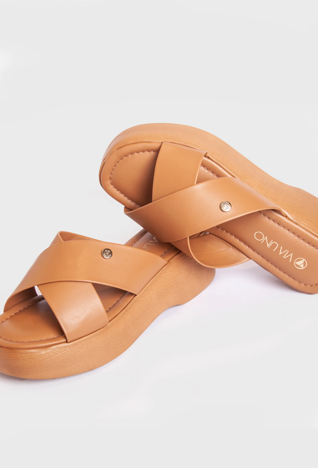 Zuecos Flatform 935005 Nuez confeccionadas en ecocuero, que combinan estilo y comodidad para cada paso. Sus tiras cruzadas y plantilla SUPERCONFORT brindan una experiencia suave y confortable, ideal para largas jornadas. La plataforma asegura un diseño moderno y versátil. La base es super liviana.